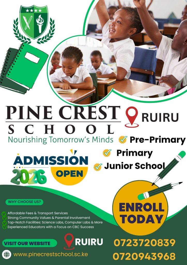 Hello, and welcome to Pine Crest School Ruiru. We are a progressive, values based day school Located at Ruiru Kihunguro Behind Ruiru star High school . Pine Crest is a great school to lay a firm foundation for your kids towards their dream careers based on the word of God. When it comes to education we lead!! At our school, you get an education customized to your child’s individual needs, certified and highly-qualified teachers, and virtues instilled into every school day